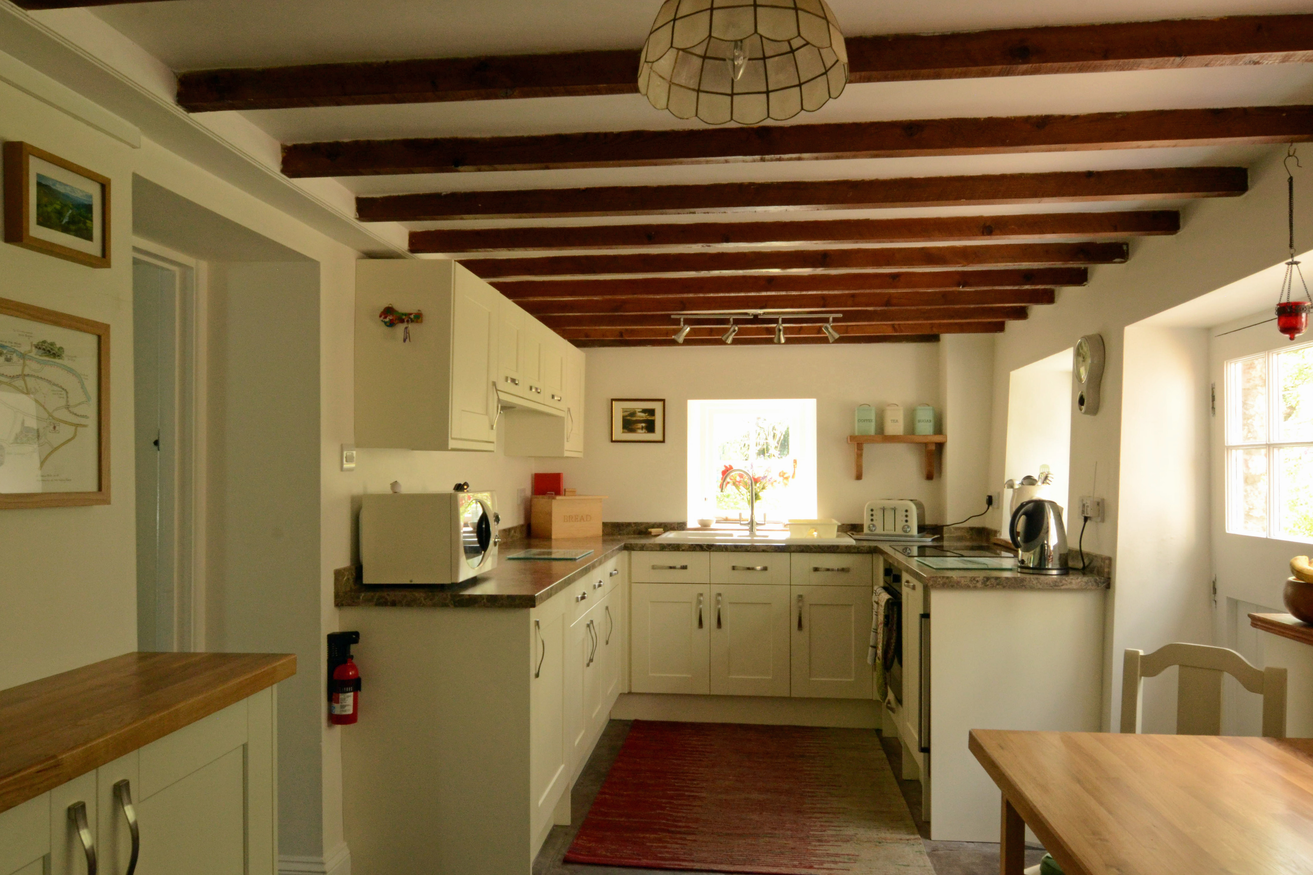 Ash Cottage is a superbly equipped and beautifully finished original stone cottage with roses around the door. A large inglenook fireplace with woodburner stove makes for cosy evenings. Flagstone floors and oak beams throughout add to the charm.